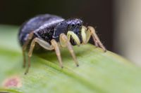 "Evarcha arcuata" (Schwarze Springspinne/Dunkler Sichelspringer/Gorillaspinne)