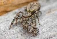 "Marpissa muscosa" with spiderling; Kilchberg ZH, Switzerland