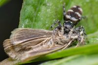 "Salticus scenicus" with moth; Kilchberg ZH, Switzerland
